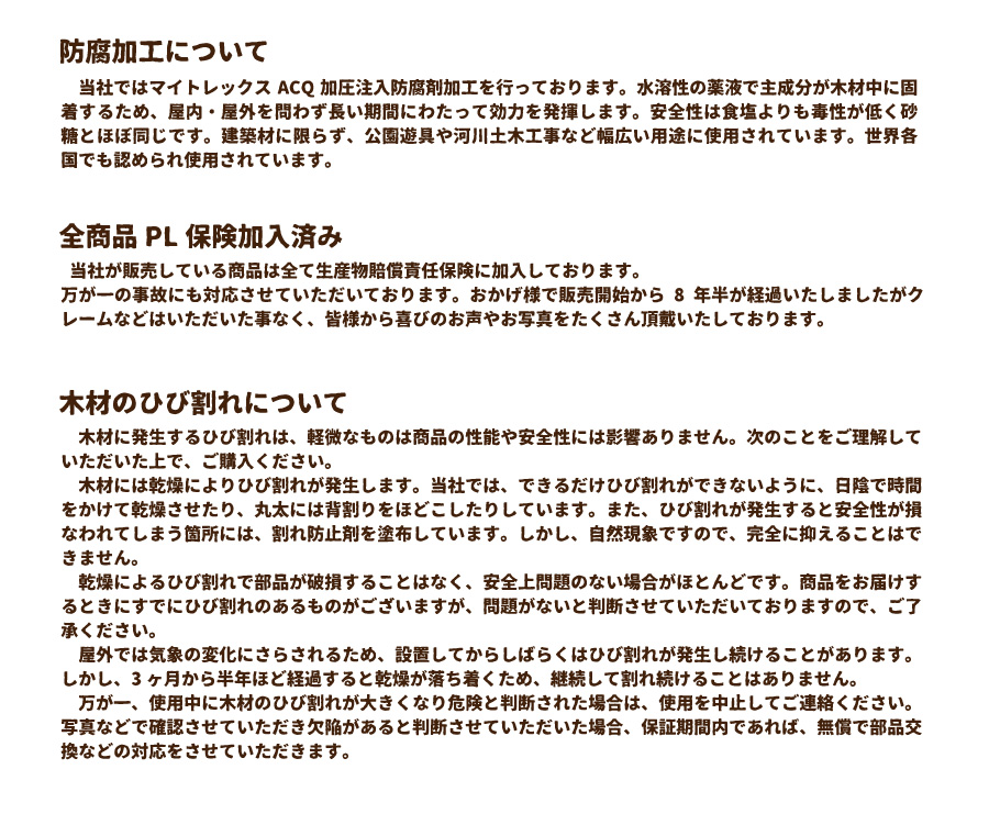 ■素材 本体 国産桧材 加圧注入防腐加工品 自社加工