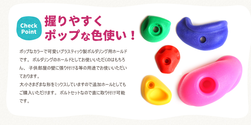 片面はボルダリングホールドを取付した見た目にもカラフルで可愛く、反対の面は丸太登りになっています。国産杉と檜板を使った非常に丈夫なつくりとなっています。